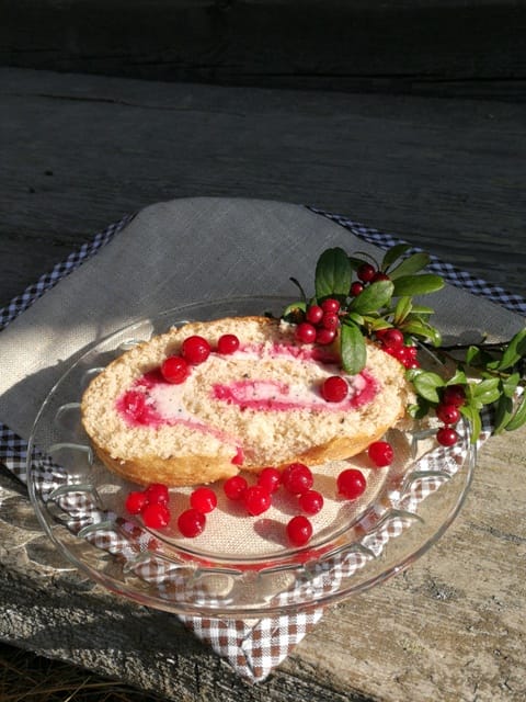 Tämä kääretorttu sopii moneen ruokavalioon. Siitä huolimatta- tai ehkä juuri siksi- leivonnainen on erittäin maukas. Voit halutessasi korvata puolukkacurdin puolukkahillolla tai jollain muulla hillolla. Jos kääretortun ei tarvitse olla maidoton, puolukkacurdissa voi käyttää voita ja kookoskerman voi vaihtaa tavalliseen kermaan ja rahkaan. Suosittelemme silti käyttämään rohkeasti kookosta!